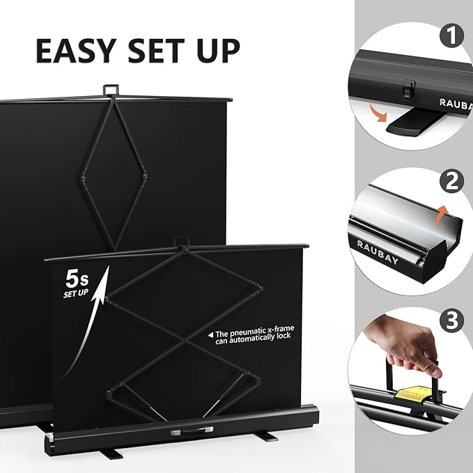 【Easy Set Up】 RAUBAY 59.8 x 82.7in Collapsible White Backdrop Screen Portable Retractable Panel Photo Background with Stand for Video Conference, Photographic Studio, Streaming