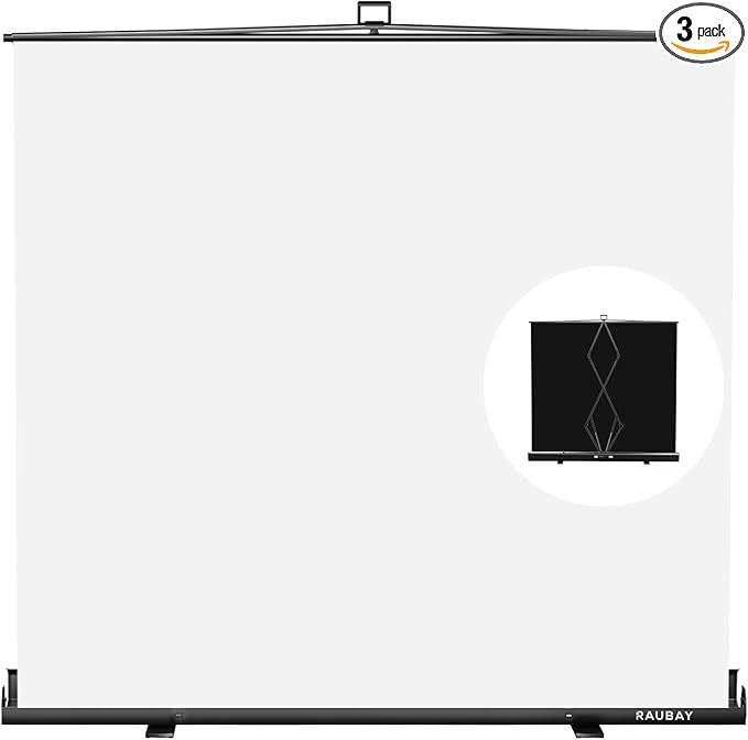 【Wider Style】 RAUBAY 78.7 x 82.7in Large Collapsible White Backdrop Screen Portable Retractable Panel Photo Background with Stand for Video Conference, Photographic Studio, Streaming