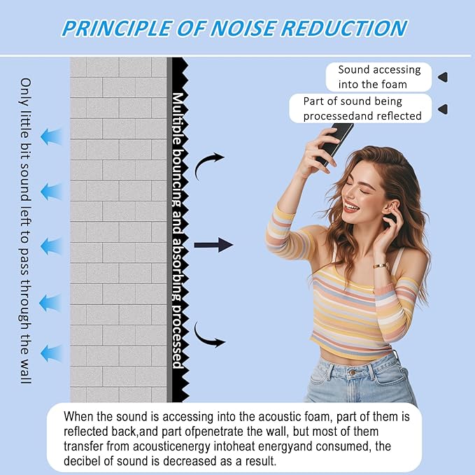 - Versatile - Our noise reduction panels are made of flame-retardant, odorless materials and are suitable for use in recording studios, music studios, home theaters, private rooms in karaoke rooms, daycare centers, laundry rooms, and other locations where high audio processing is required
