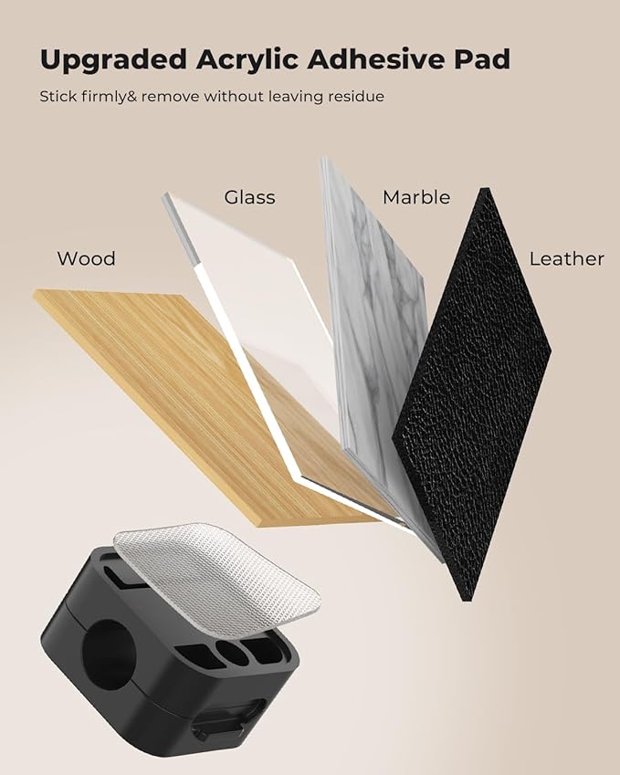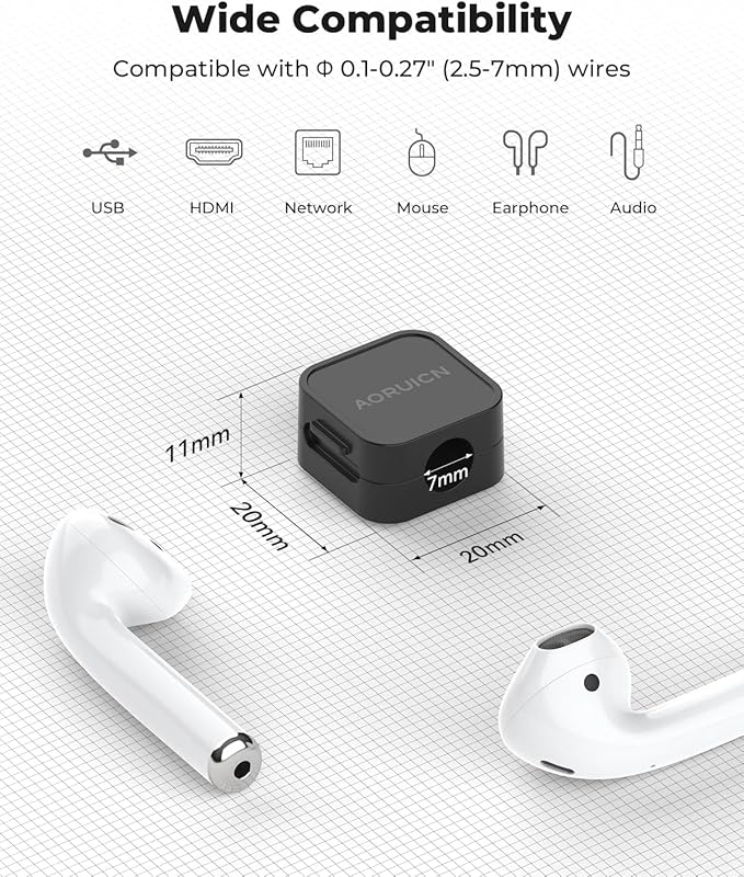 - Keeping All Cords Organized: Diameter of about 0.27in allows to hold most cords, such as Phone Charging Cords,Type-C charging cords, lightning cords, HDMI cords, USB cables, computer power wires, network wires, mouse cords, keyboard cables, headphone cords. [Warm Tips] After sticking the cord holders, please WAIT for 30 minutes before using for better adhering effect
