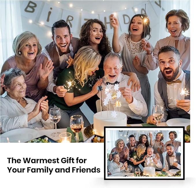 - Gift of Connection – Elegant black frame with wall mount/stand. Pre-load a surprise album for birthdays, anniversaries, or reuniting long-distance loved ones